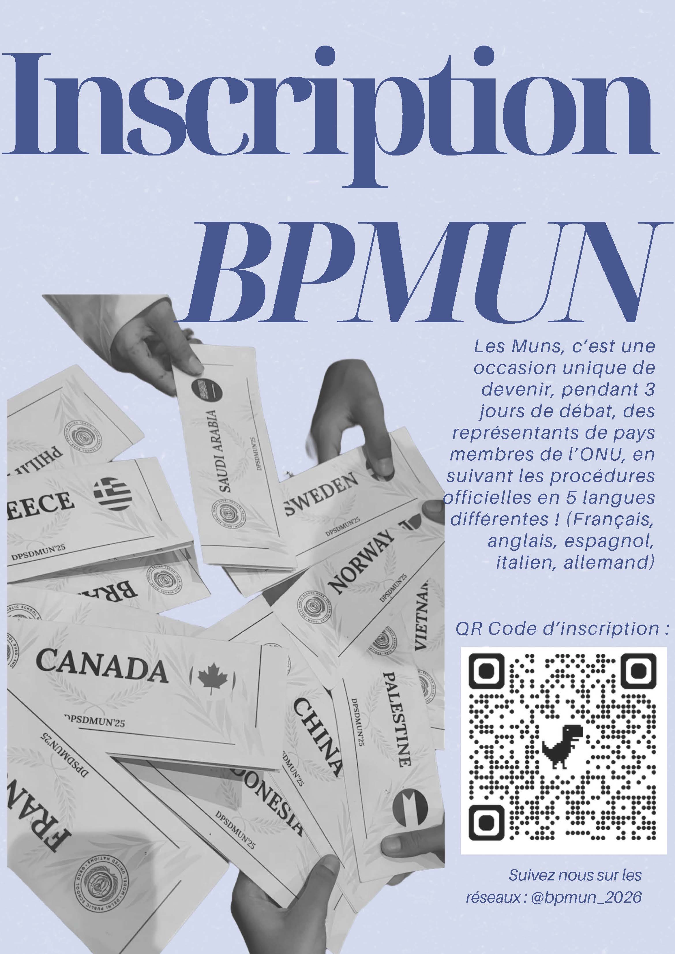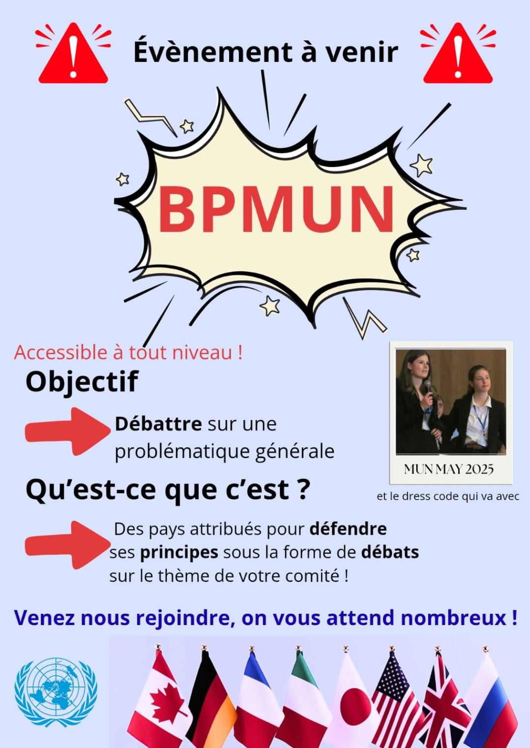 Débattre sur le modèle des Nations Unies autour de sujets d'actualité...venez découvrir les BP MUN !